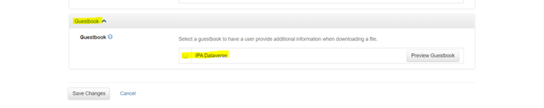 - Scroll to “Guestbook” and select “IPA Dataverse”