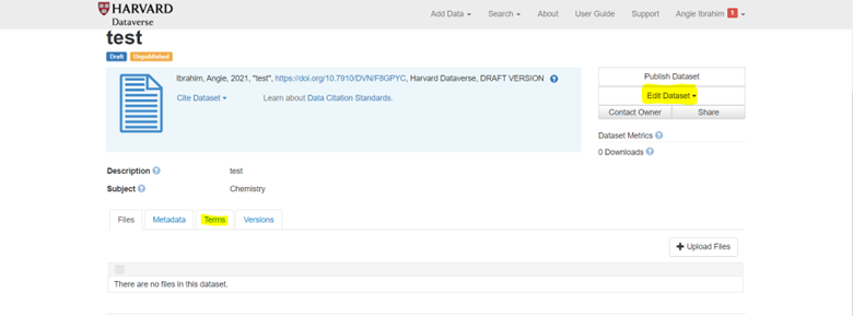 - From the entry page, click “Edit Dataset” > “Metadata”