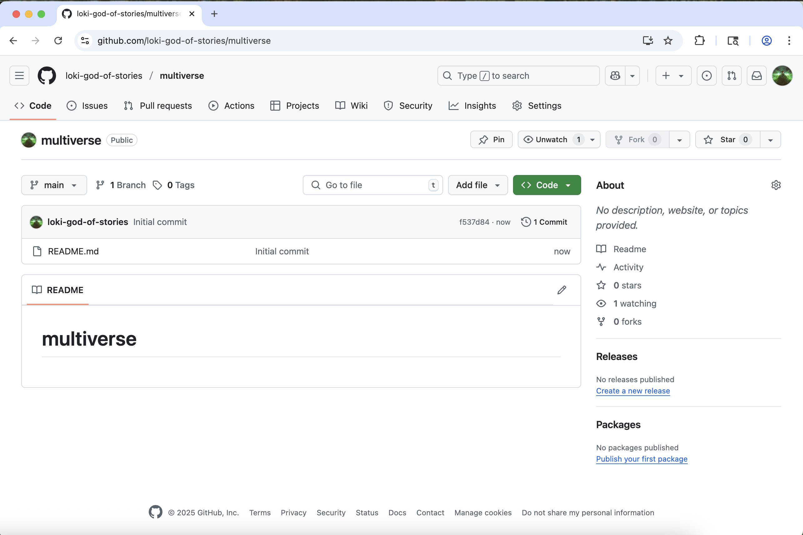 You will be redirected to your newly created and empty multiverse repo.