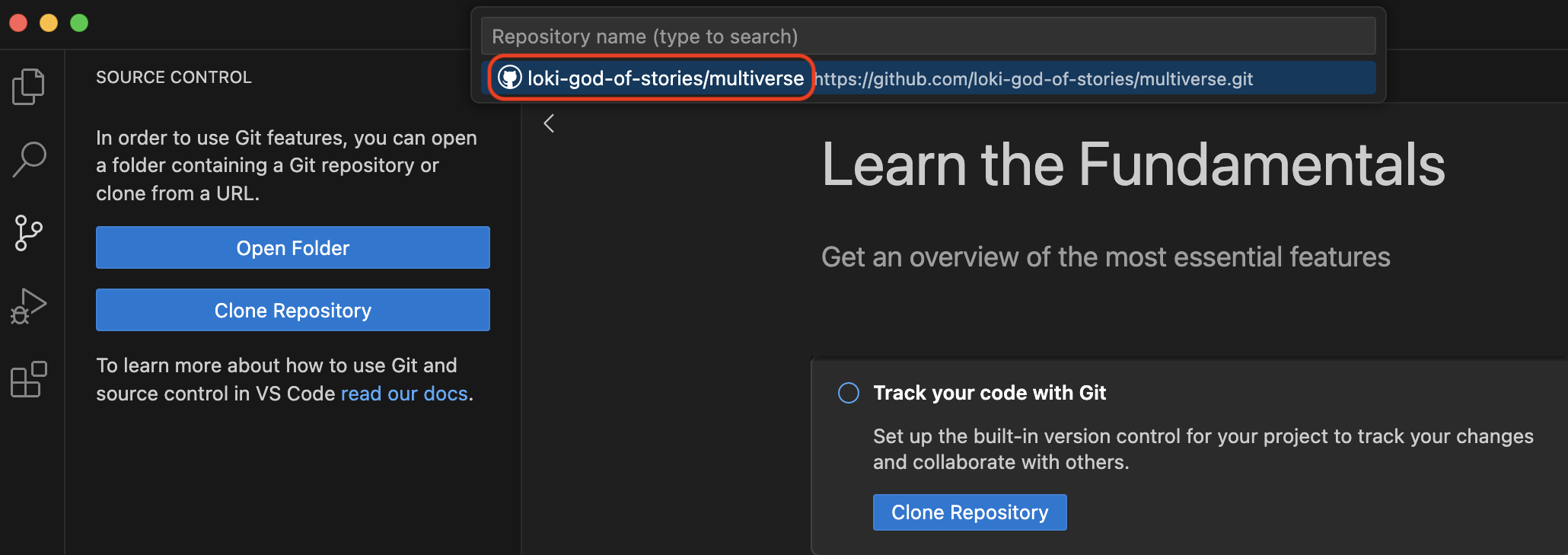 Now that the multiverse repo has been created, we can “clone” it (get a local copy of the repo) through VS Code (or Positron).